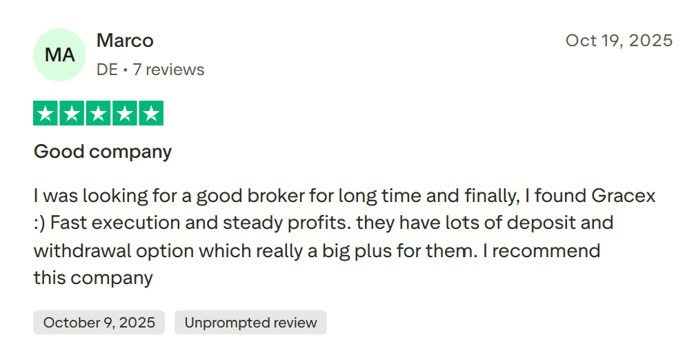 Благодаря стабильному исполнению сделок, логичной структуре кабинета, прозрачной тарифной политике и наличию сервисов автоматизации Gracex формирует уверенную репутацию и привлекает всё больше трейдеров, ищущих предсказуемую и технологичную торговую среду.
